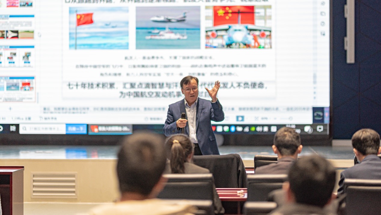 开班典礼后,陶智副校长做了题为《航空发动机人的航空报国梦和矢志不渝情》的讲座,动力学院吴大观英才班本科生和航发院吴大观菁英班博士生参与讲座,讲座由动力学院院长助理魏大盛主持。