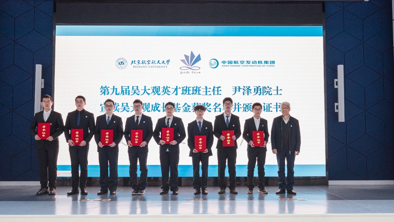 尹泽勇院士宣读第九届吴大观成长基金获奖名单并为学生代表颁发证书。