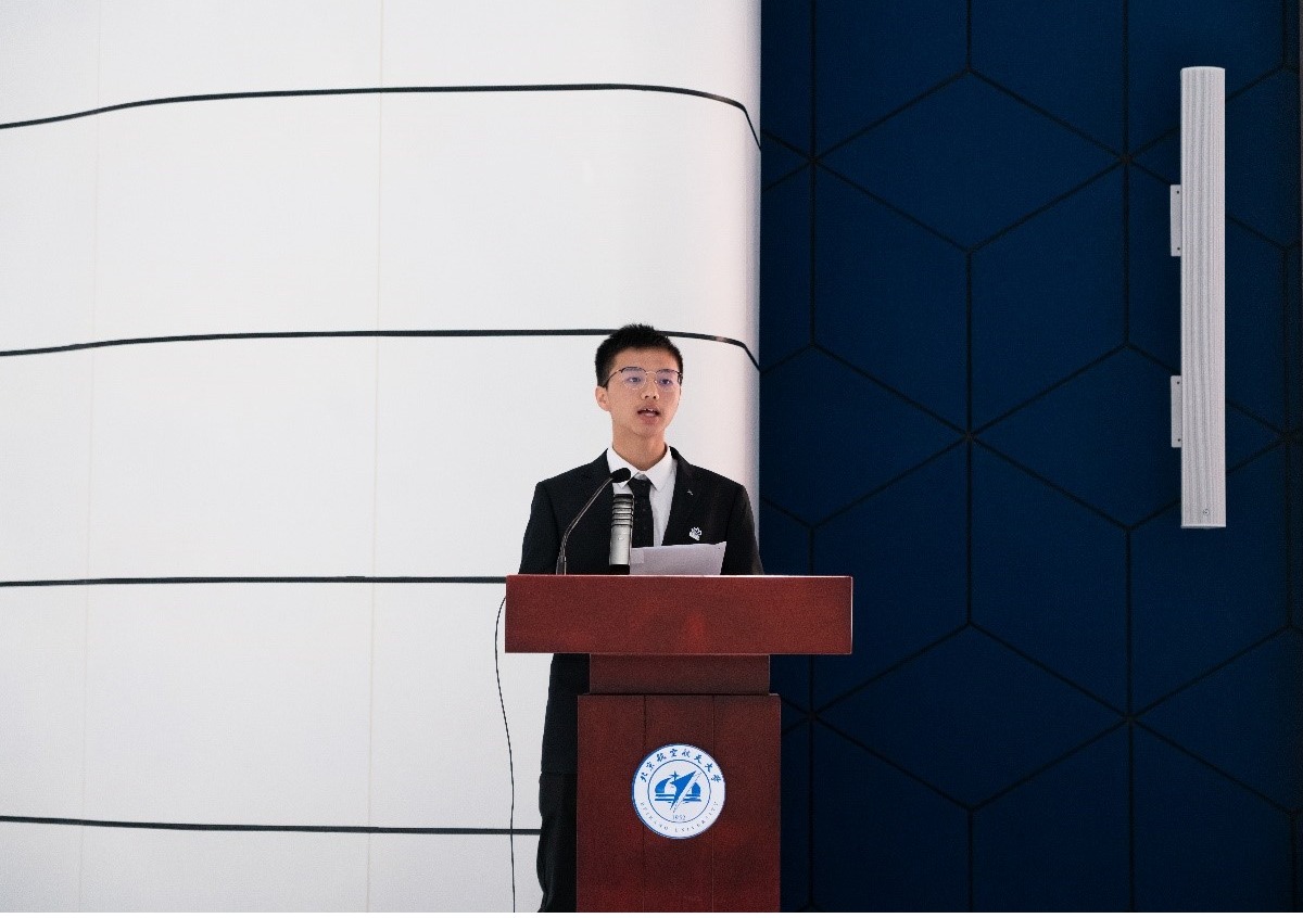刘林宗副书记回顾了北航和中国航发在过去取得的辉煌成绩。他指出,新中国的发展离不开以吴大观先生为代表的老一辈航发人为中国航发事业做出的卓越贡献,他们用坚定的理想信念,高尚的品德情操,将空天报国的情怀写在祖国蓝天上。他勉励与会同学要充分认识到作为新时代航发人肩负的历史使命,以实现中华民族伟大复兴为己任,要将个人发展融入到国家发展、民族振兴的大格局当中。青春因磨砺而出彩,求学时代不畏挫折,要勇做科技自立自强的急先锋,争当航空发动机事业发展的排头兵,用最执着的奋斗,成就最精彩的事业,书写无怨无悔的壮丽青春。