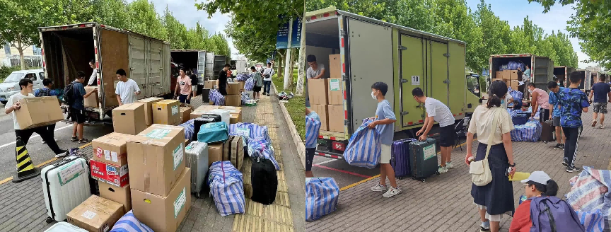押车负责人对每件行李进行核查和登记后,志愿者们将行李搬上了货车,确保无一遗漏。押车负责人跟随车辆一起出发,在下车点看护行李,帮助志愿者们卸车、搬运行李至相应宿舍。