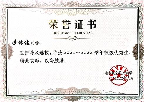 在北京航空航天大学2021-2022学年先进班集体和优秀宿舍评选活动中,我院190441班荣获“十佳班集体”荣誉称号!