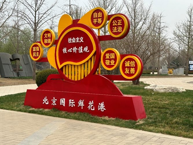 鲜花港入口处是花神广场,这里作为红色教育区,不仅搭建了一座小长城,四周还有许多党史小故事。同学们在参观时既欣赏到了花海的宏伟,也学习到了不少党史知识。