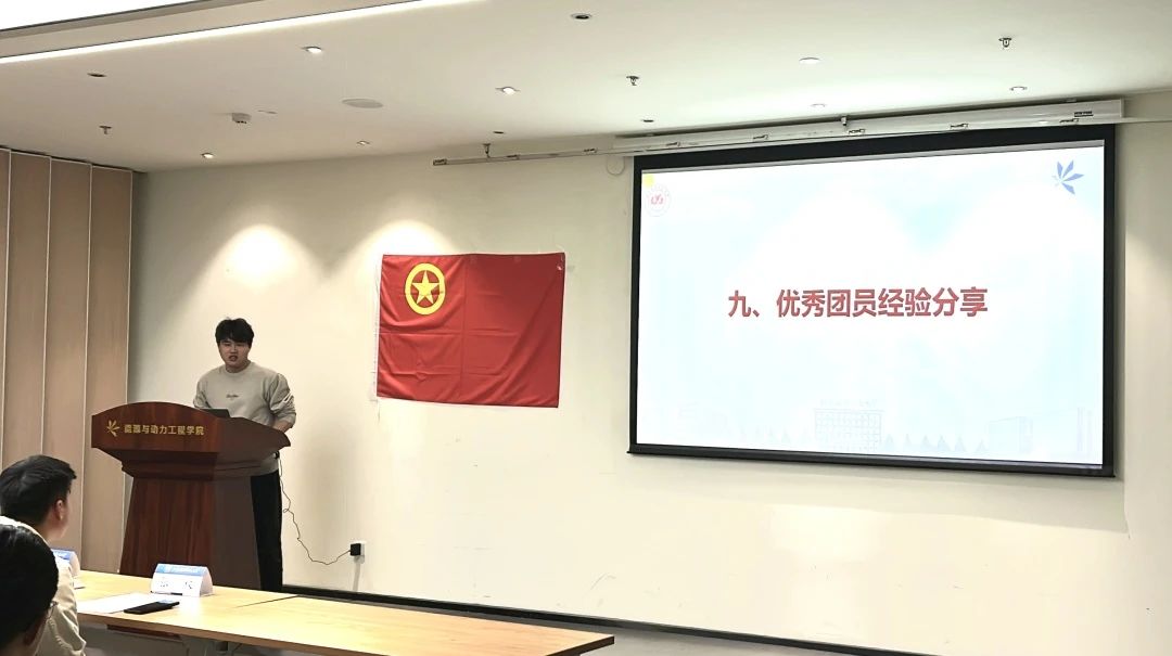 优秀团干部廖宵果以“踔厉奋发,笃行不怠”为主题,分享自己大学以来在学业成绩、学生工作、科技竞赛、社会实践等各方面的成长与收获,号召大家应当夯实数理基础,加强理论学习,并在实践中学真知悟真谛,在祖国的万里长空放飞青春梦想,以昂扬奋进的姿态书写无愧于时代的壮丽篇章。