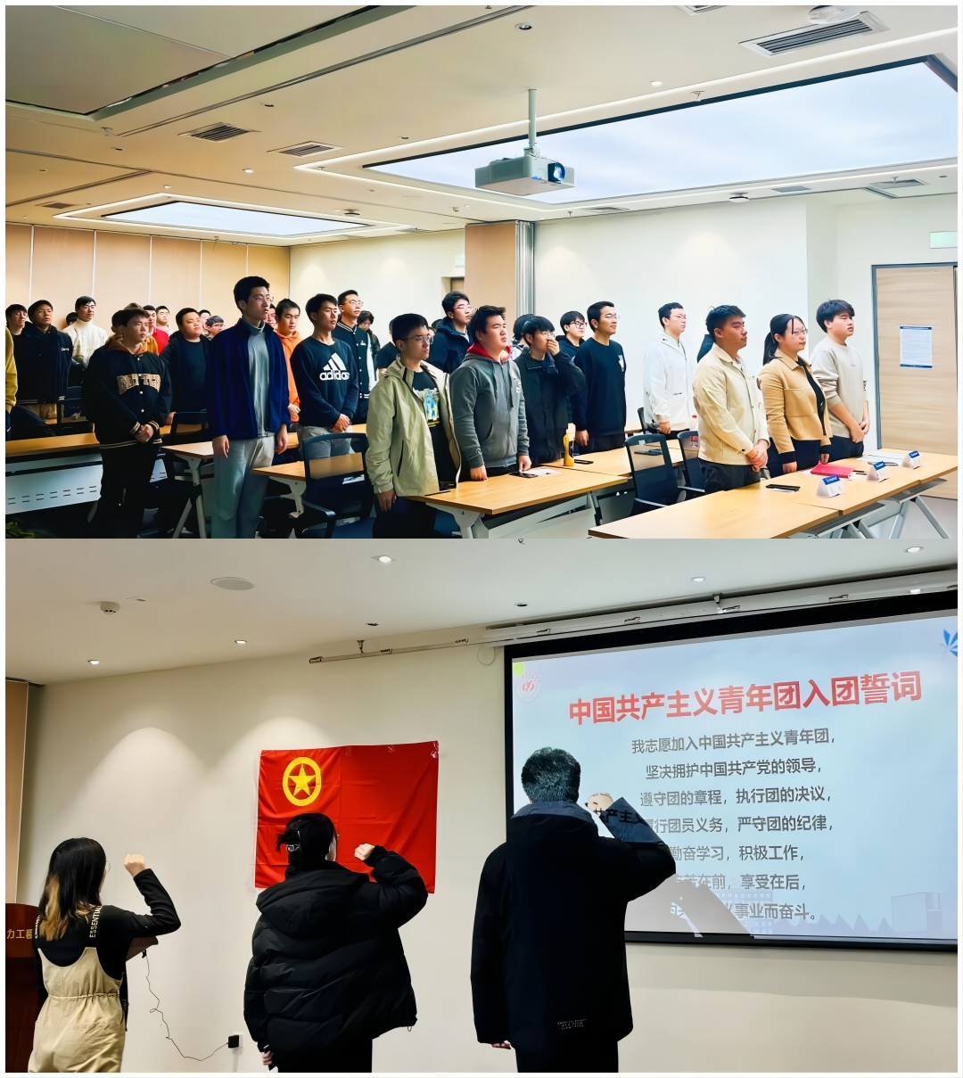 面向中国共产主义青年团团旗,团员们庄严宣誓。誓言代表的不仅是一种精神,更是一种责任与担当,一声声洪亮的声音昭示着各位团员勇于拼搏、为共青团努力奋斗的坚定信念。宣誓完毕后,入团介绍人代表叶昊向新团员宣读《团章》中有关团员的义务与权利的条款。