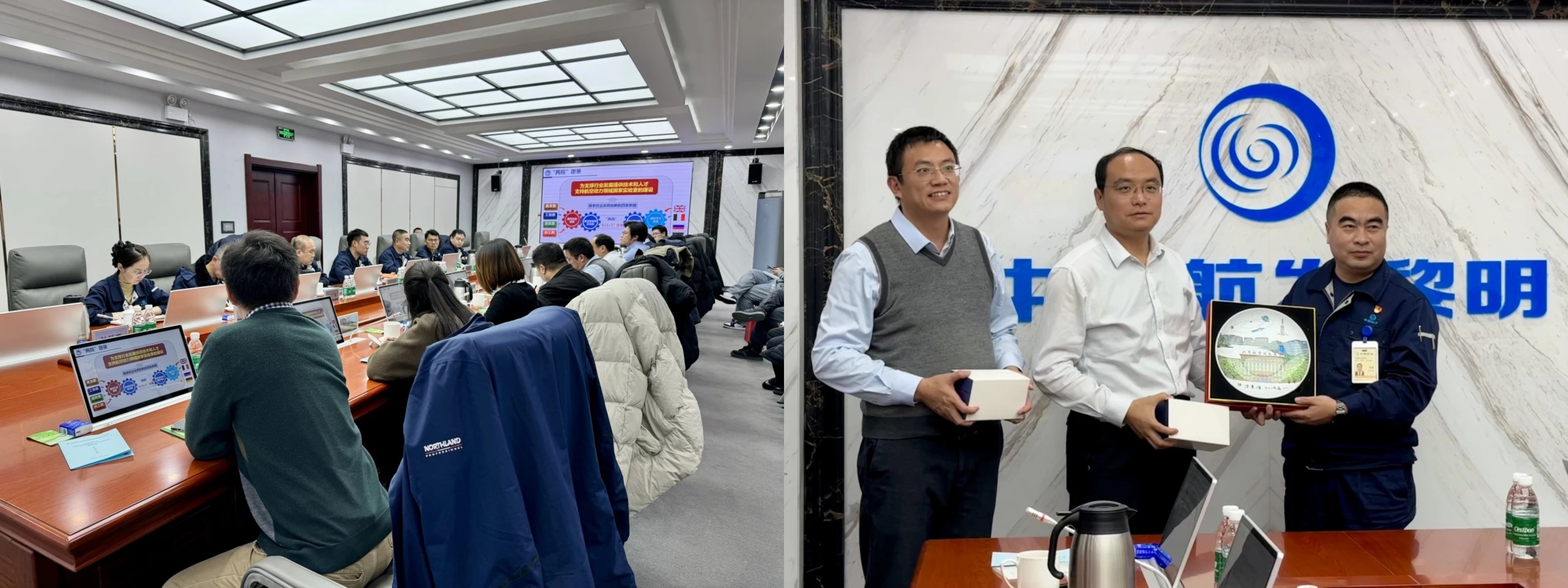 下午,调研团来到中国航发黎明开展调研交流,首先对园区展览馆和发动机加工生产部门进行了参观,随后进行座谈交流。中国航发黎明项目经理朱勇、技术中心设计室主任王凯等参加了座谈。在观看中国航发黎明宣传视频之后,王凯、李挺、刘火星分别介绍了中国航发黎明、动力学院和航发院的基本情况,双方就完善产学研一体机制和未来合作方向进行讨论、互赠纪念品并合影留念。