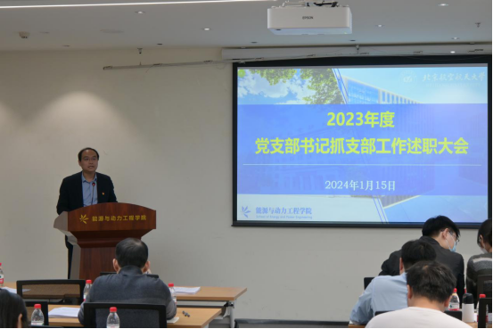 5个教师党支部,10个研究生党支部,2个本科生党支部,围绕学习贯彻习近平新时代中国特色社会主义思想和党的二十大精神,落实全国组织工作会议和全市组织工作会议部署要求,落实校院两级党建重点任务,扎实开展主题教育;落实基层党建重点任务,落实《中国共产党普通高等学校基层组织工作条例》《北京普通高等学校党建和思想政治工作基本标准》,推动党建工作和事业发展深入融合;加强支部班子和制度建设,在教学科研或管理服务等工作中发挥支部战斗堡垒作用和党员先锋模范作用的情况;“学习日”“三会一课”等组织生活开展情况,党员发展以及教育管理监督党员、组织宣传凝聚服务师生情况;支部工作取得的成效、存在的问题、加强和改进工作的思路措施等内容,依次进行年度工作现场述职。董卓宁对每位支部书记的述职情况进行逐一点评,与会人员对各支部书记进行测评。