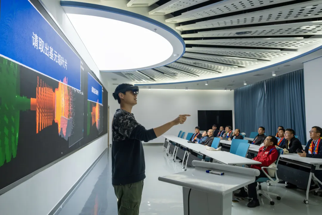 学院领导带领校友参观了学院一层及七层文化展区、部分实验室、“心动”科教中心以及北航-中国航发“两院”创新成果展。