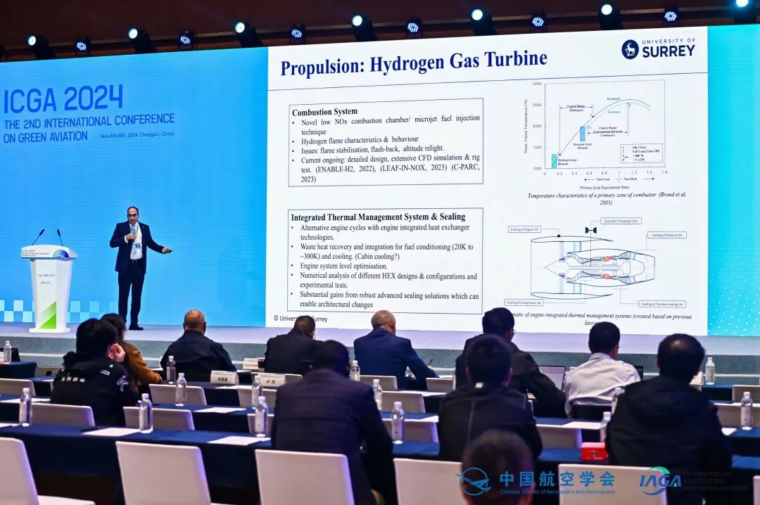 2024年11月6-7日,第二届绿色航空发展大会在成都西部金融创新中心成功举办,来自全球十多个国家四百多位嘉宾学者受邀参加了会议。大会旨在为国际组织,国别科技组织,各国航空管理当局、高校、科研机构等提供一个全球化的交流平台,提升对气候变化的认知、交流绿色航空前沿成果、促进国际合作,驱动航空业以清洁、智能、安全、创新的方式发展。会议同期召开 9 个分论坛,我院承办的第一分论坛“新型航空动力”在主会场进行,董卓宁书记、邱璐副院长出席。
