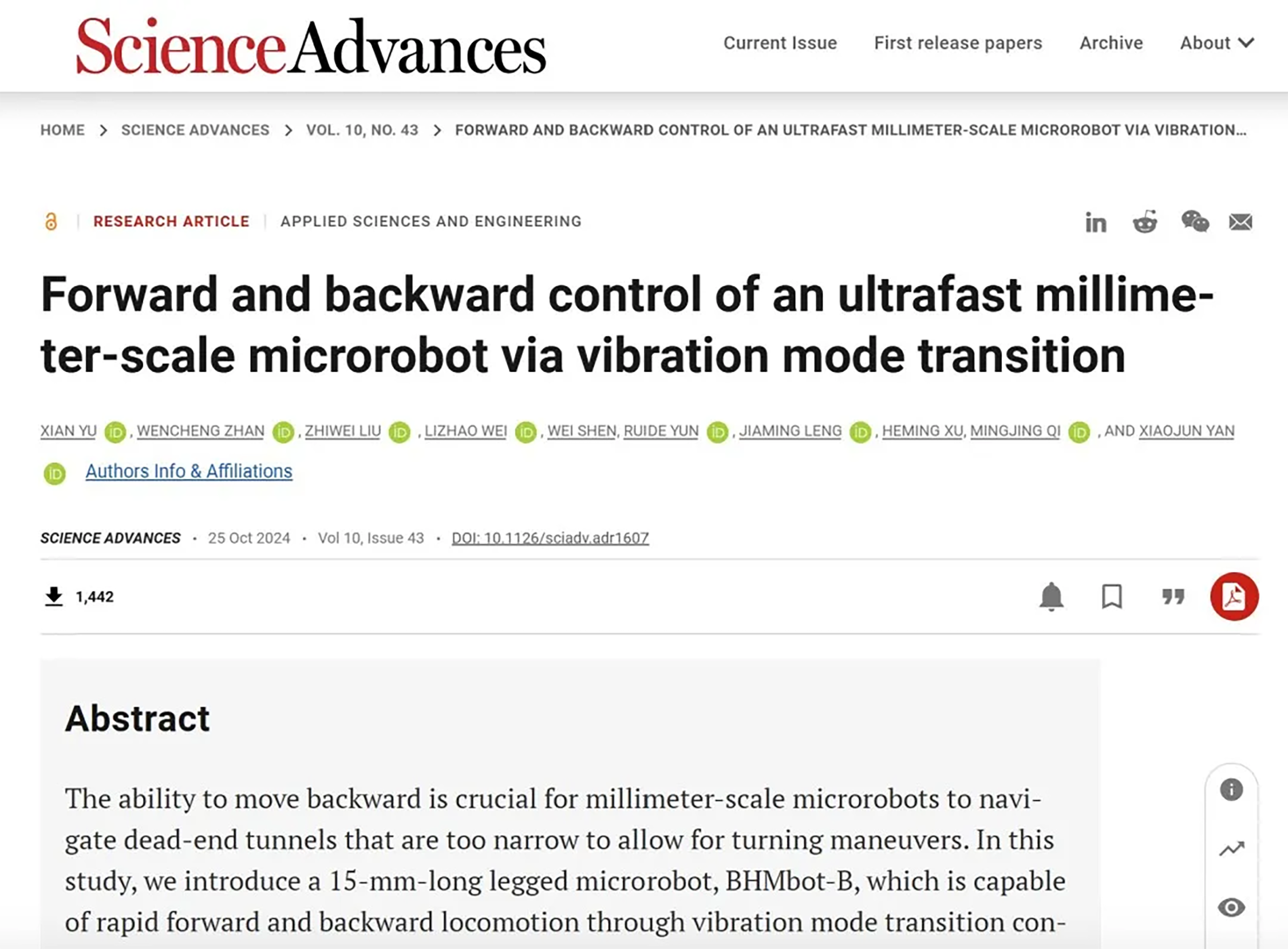 机器昆虫人成果登上Science子刊