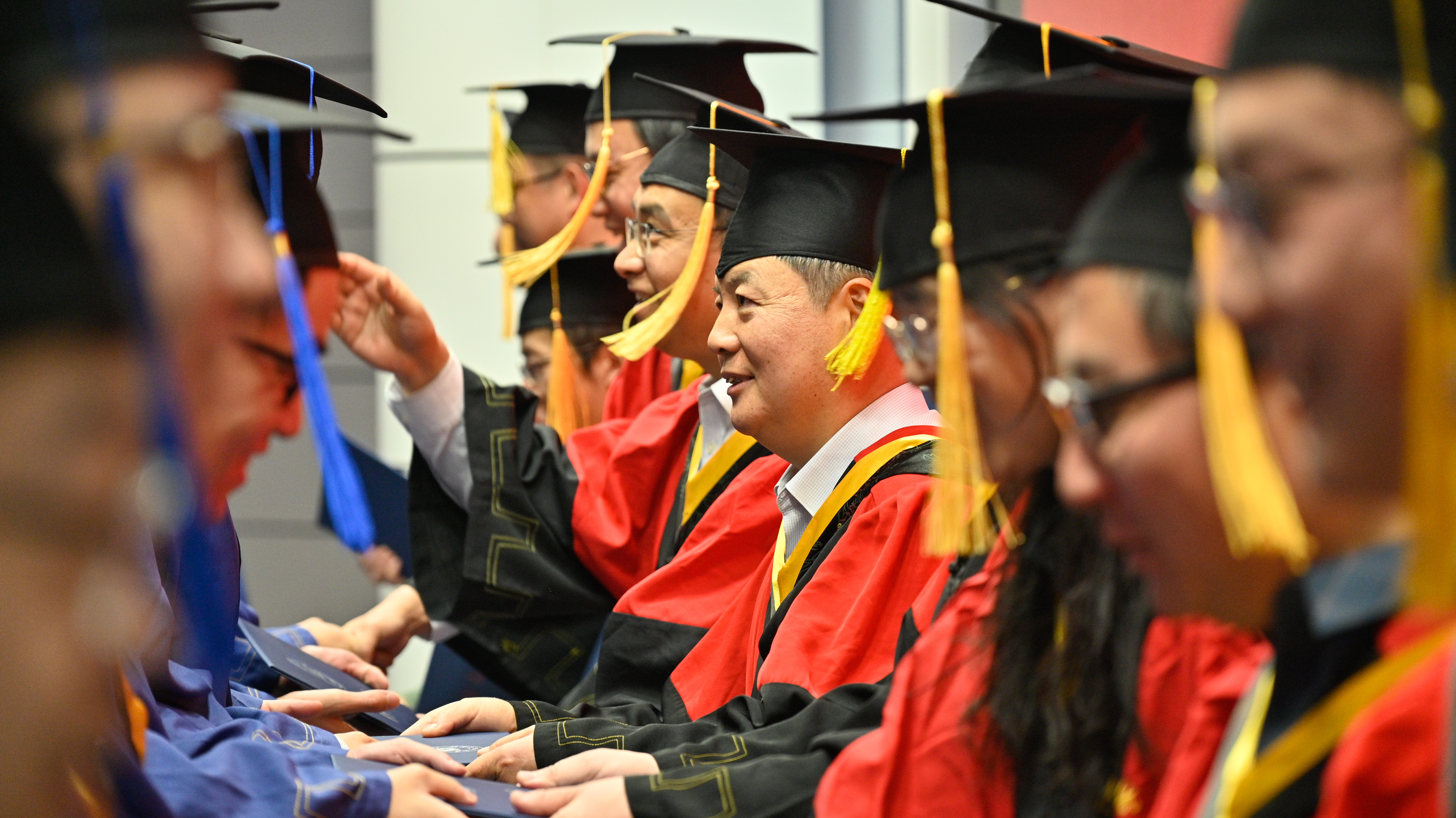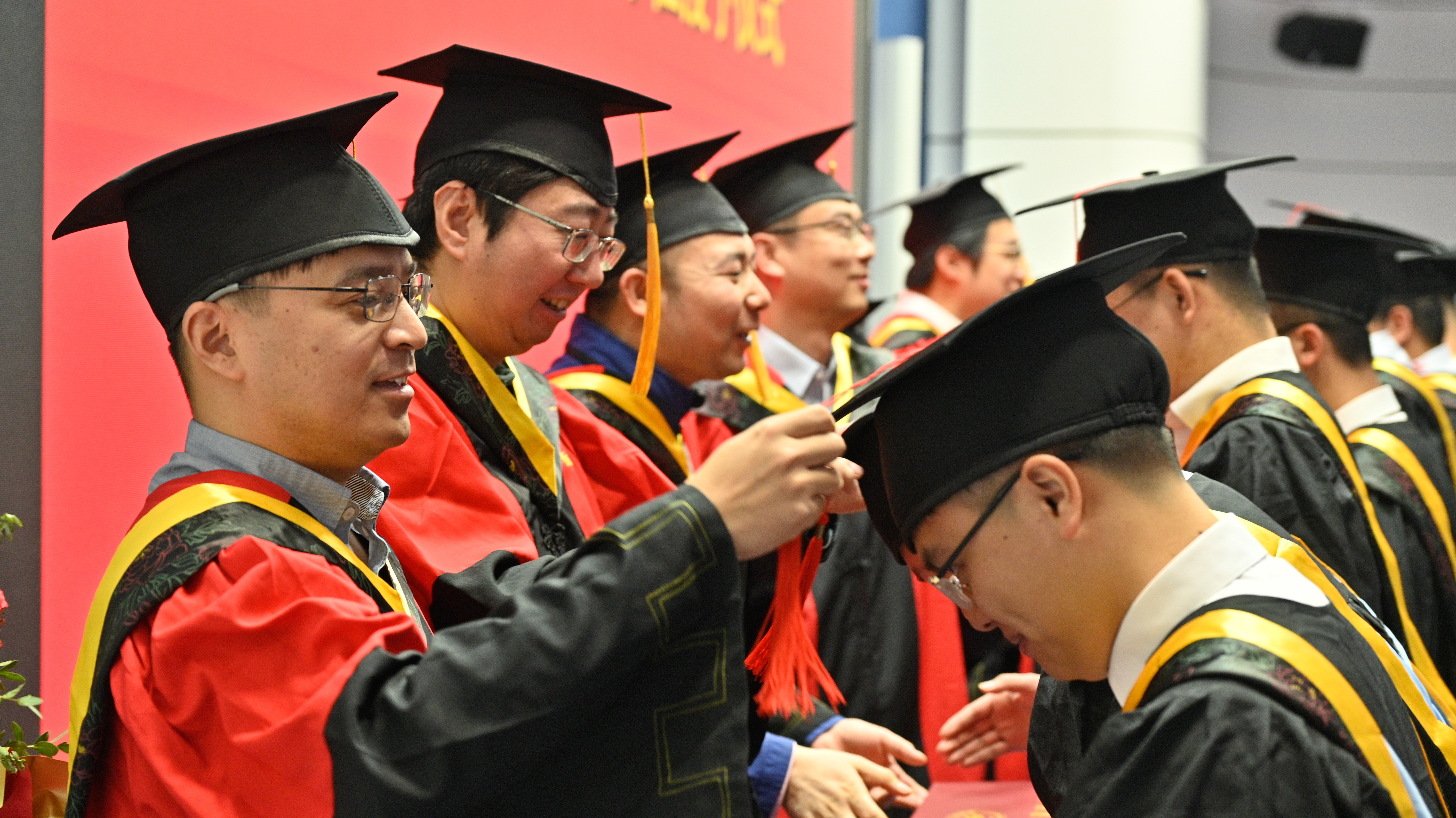 典礼的最后是2025届研究生毕业生学位授予仪式,院领导及导师代表为在场的毕业生拨苏正冠,送上美好祝愿。