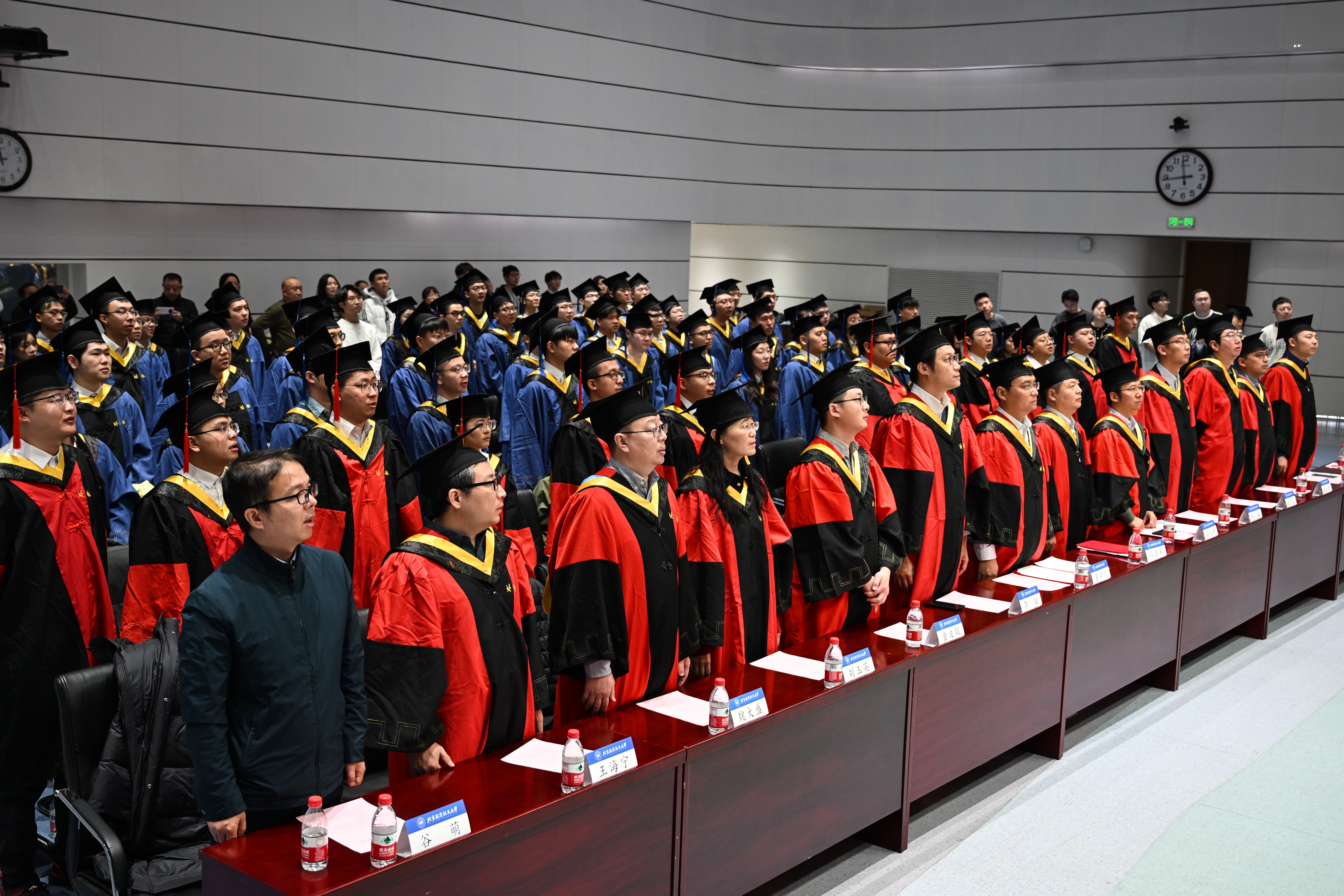 随着庄严的国歌响起,全体师生起立合唱,毕业典礼正式拉开帷幕。