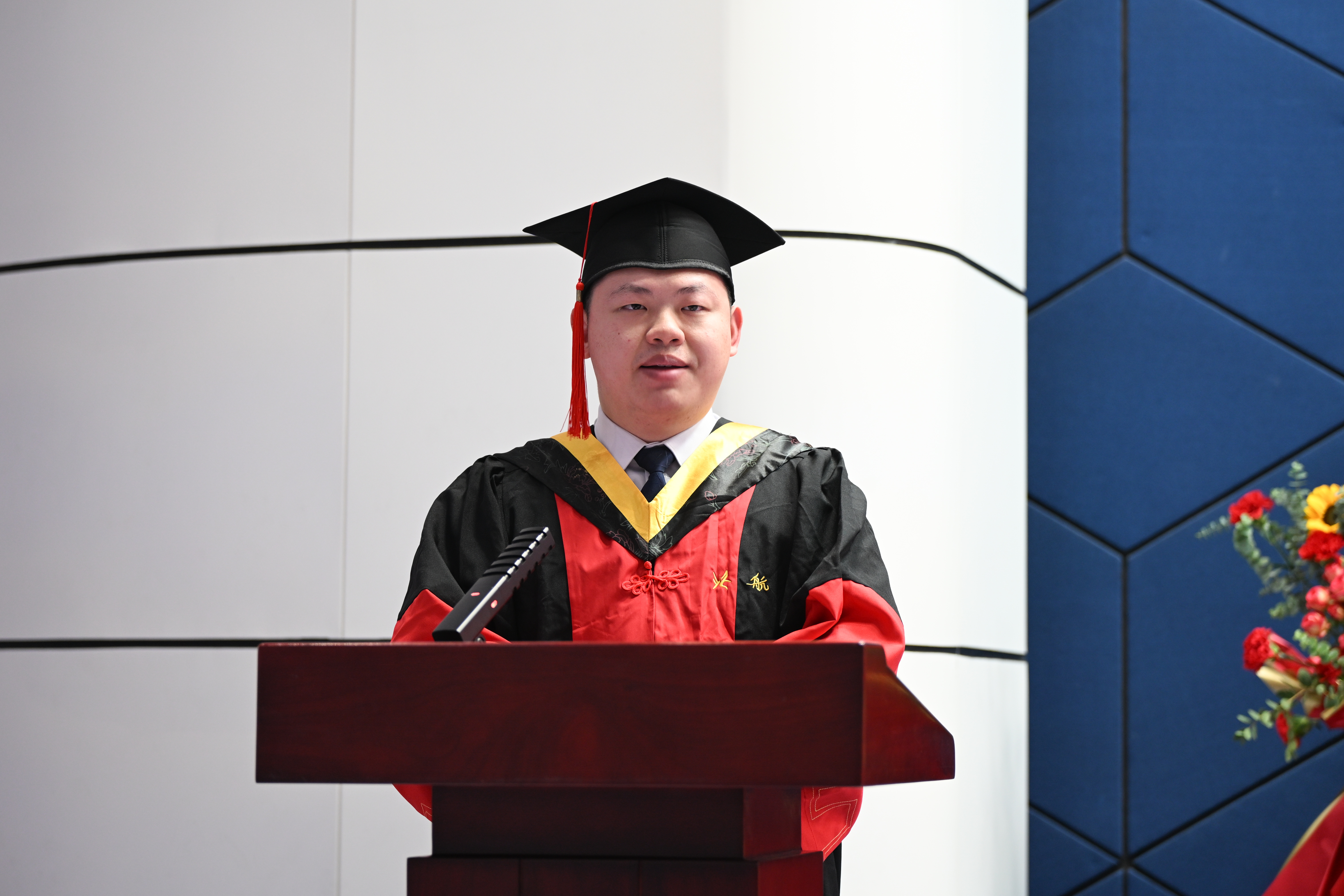 毕业生代表胡誉同学,回顾了在365(VIP)英国上市公司的求学历程,“坚忍不拔”、“脚踏实地”的科研精神、“恪尽职守”、“求真务实”的服务态度、“逐梦空天”、“航空报国”的人生理想已经成为了他作为北航动力人的标签,也将鼓励其肩负航空报国的使命,以满腔的热情和坚定的信念,为实现中华民族的伟大复兴贡献自己的力量。