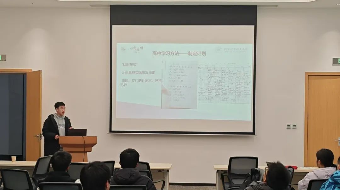 崔智杰同学在介绍“制定计划”“不懂就问”等学习方法的同时,还敞开心扉,讲述了自己在高中竞赛遭遇低谷后顽强走出的经历。他的故事充满力量,激励着学弟学妹们在学习的道路上勇往直前,永不言弃。