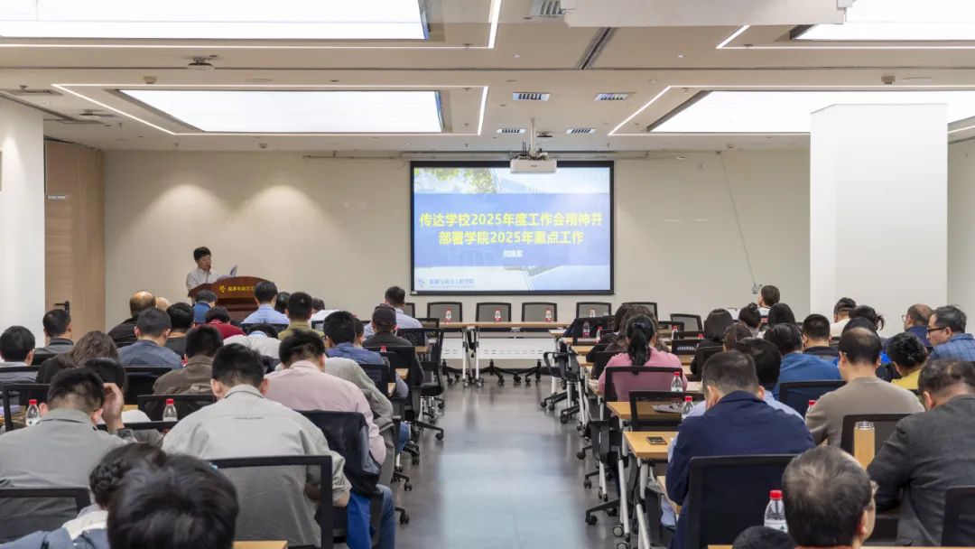 院长闫晓军向全体教职工传达了学校2025年度会议精神,并对学院2025年重点工作进行部署。他表示,2025年是学校的“数智赋能年”,学院要坚持以习近平新时代中国特色社会主义思想为指导,深入学习贯彻党的二十大和二十届二中、三中全会精神,坚持和加强党的全面领导,坚持社会主义办学方向,落实立德树人根本任务,全面落实学校和学院党代会精神,持续深化综合改革,以数智赋能学院高质量发展,助力学校加快建设中国特色、世界一流大学。