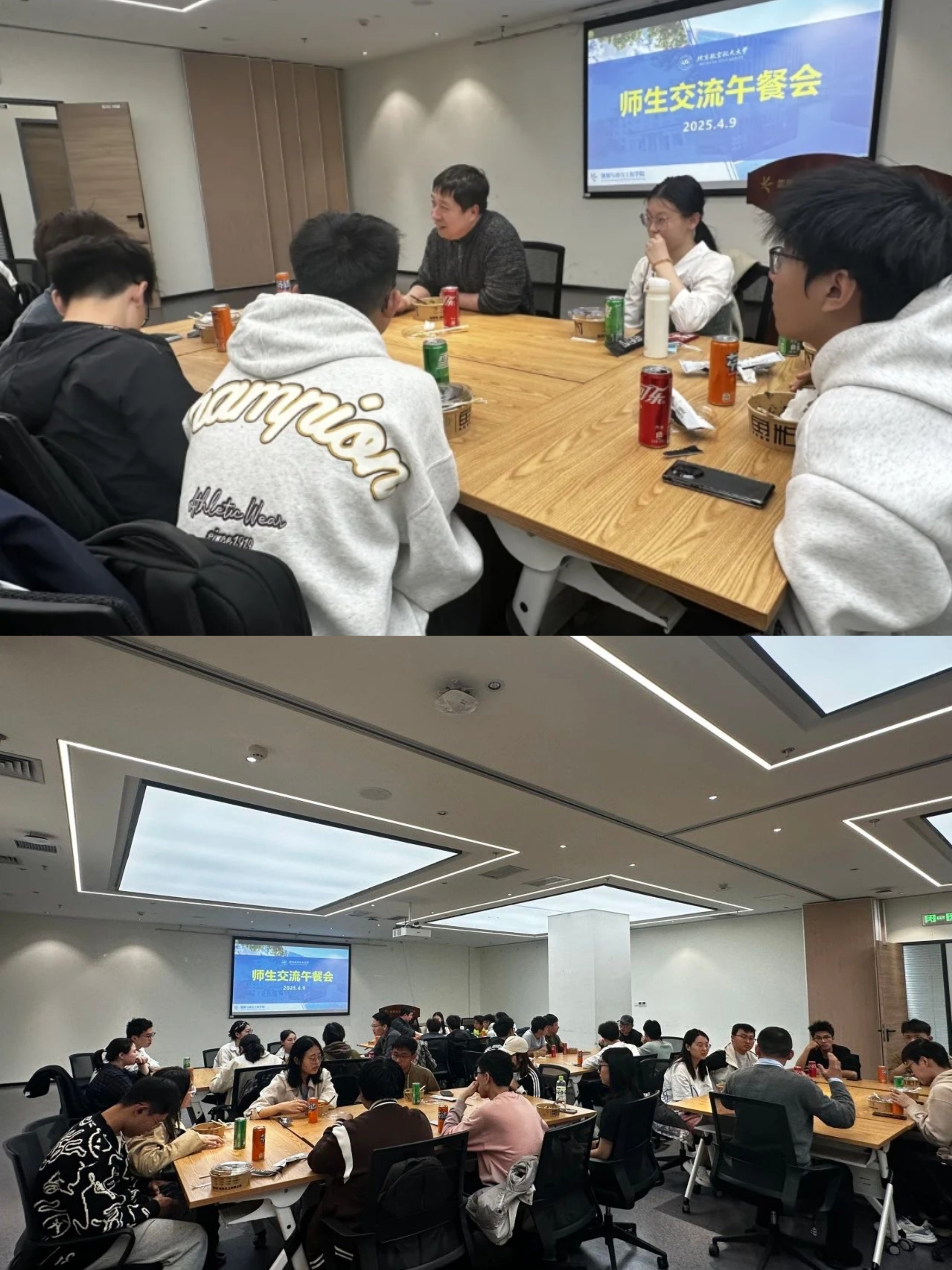 为加深大一学生对动力学院的认识,并增强学生对专业的了解,4月9日,动力学院于在沙河校区F703-1举办了2024级大类招生首场师生午餐会。学院教师代表与30名航空航天大类书院学生共进午餐,围绕学院情况、专业介绍、科技实践、个人发展等话题深入开展交流。
