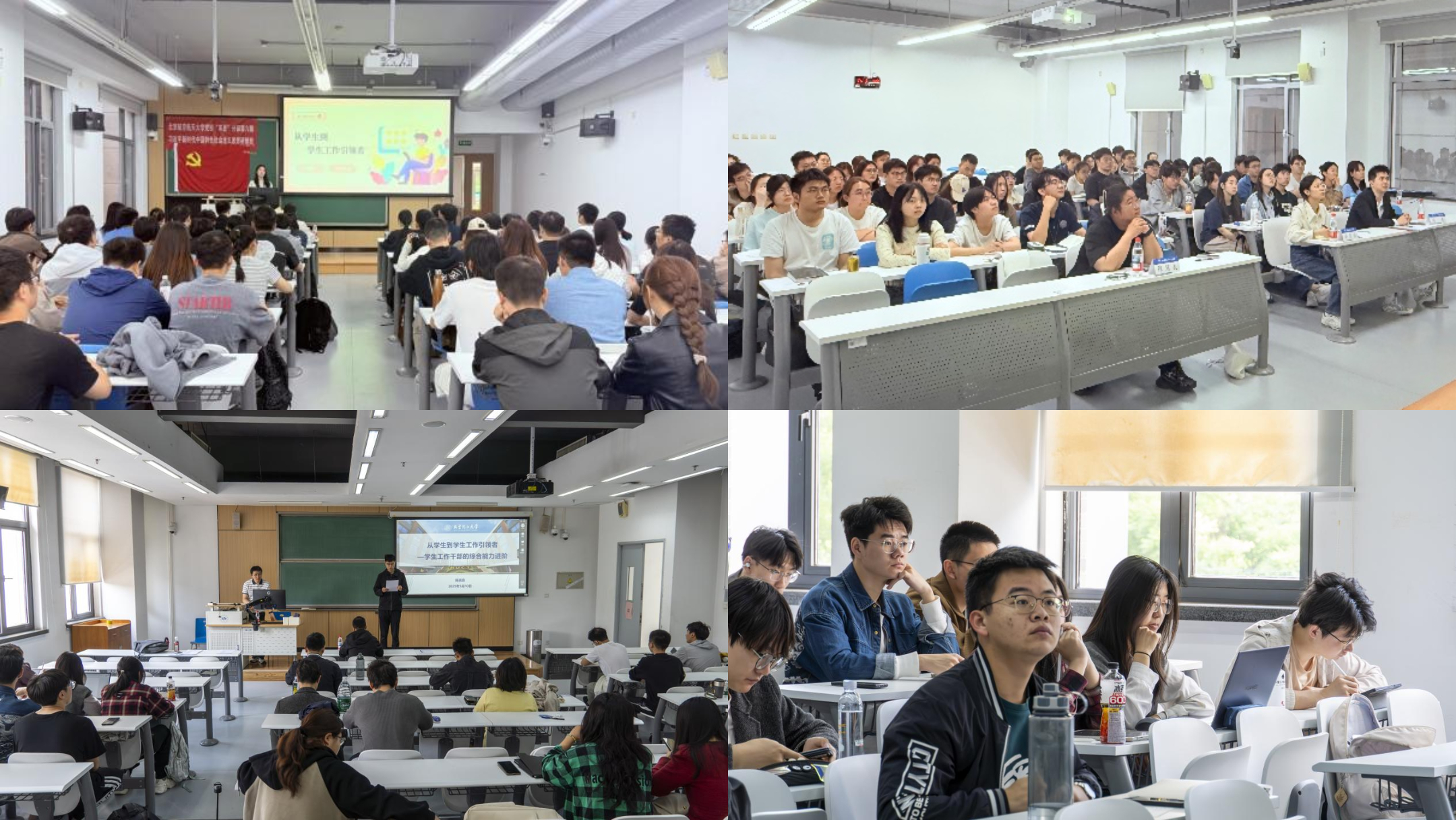 在学院路校区,张园园老师围绕《从学生到学生工作引领者》主题,结合自身十年学生工作经历,从多个维度系统阐述了学生工作的核心内涵与实践经验。关于 “如何做好学生工作”,提出“向上级请示、向同事问策、向学生问需”的工作机制,强调学生工作者既要坚守原则,也要灵活运用沟通技巧,在解决实际困难中传递思想引领的力量。