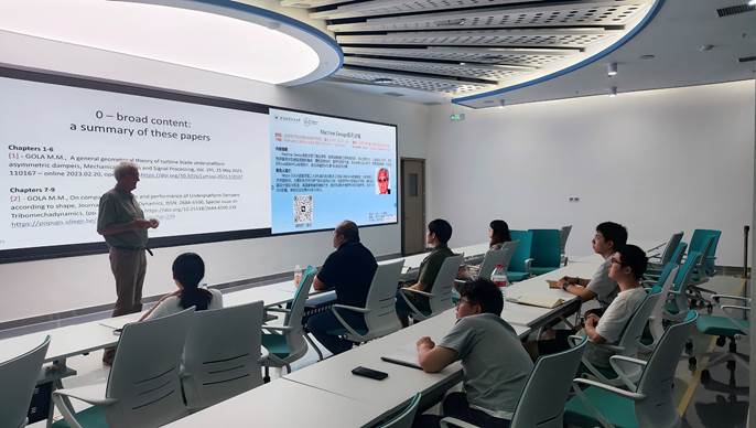本次暑期课程特邀都灵理工大学前副校长、机械与航空航天工程系荣誉教授Muzio Gola担任主讲。Gola教授是高速旋转机械动力学领域的权威专家,课程内容涵盖赫兹接触与轴承、螺栓连接结构及疲劳问题等前沿课题。他以深厚的学术功底和生动的教学方式,将理论与实践紧密结合,激发了学生的浓厚兴趣。学院近30位同学参加了本次课程,课堂互动热烈,学生踊跃提问,Gola教授逐一细致解答。