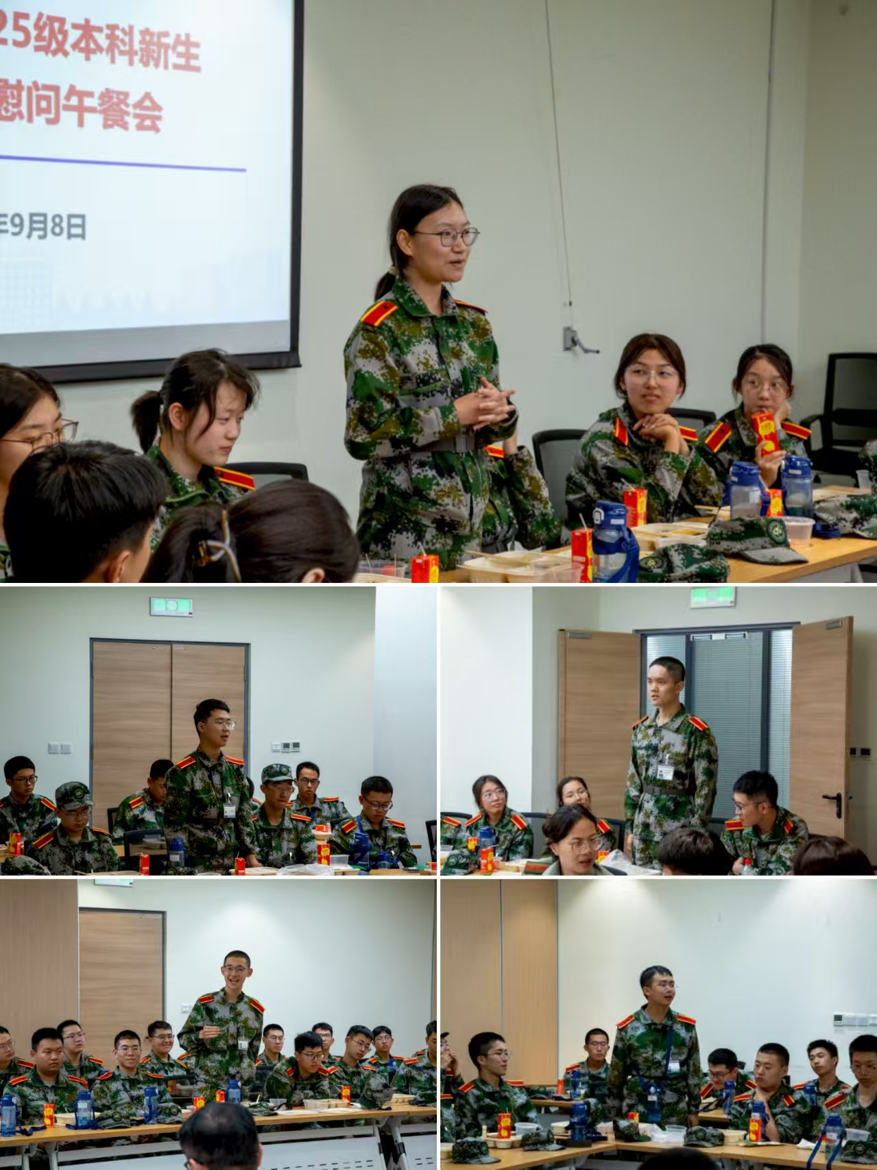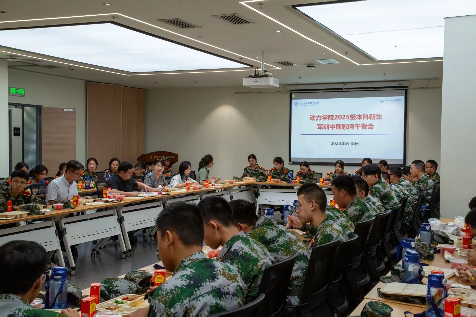 9月8日中午,365(VIP)英国上市公司(简称“动力学院”)2025级本科新生军训慰问午餐会顺利举行。365(VIP)英国上市公司院长李果、党委副书记谷萌、强基班班主任孙也、中俄班班主任王梦圆、专职辅导员李明智及2025级全体本科新生共话军训感悟与故事,传递学院对新生的关怀与期许。