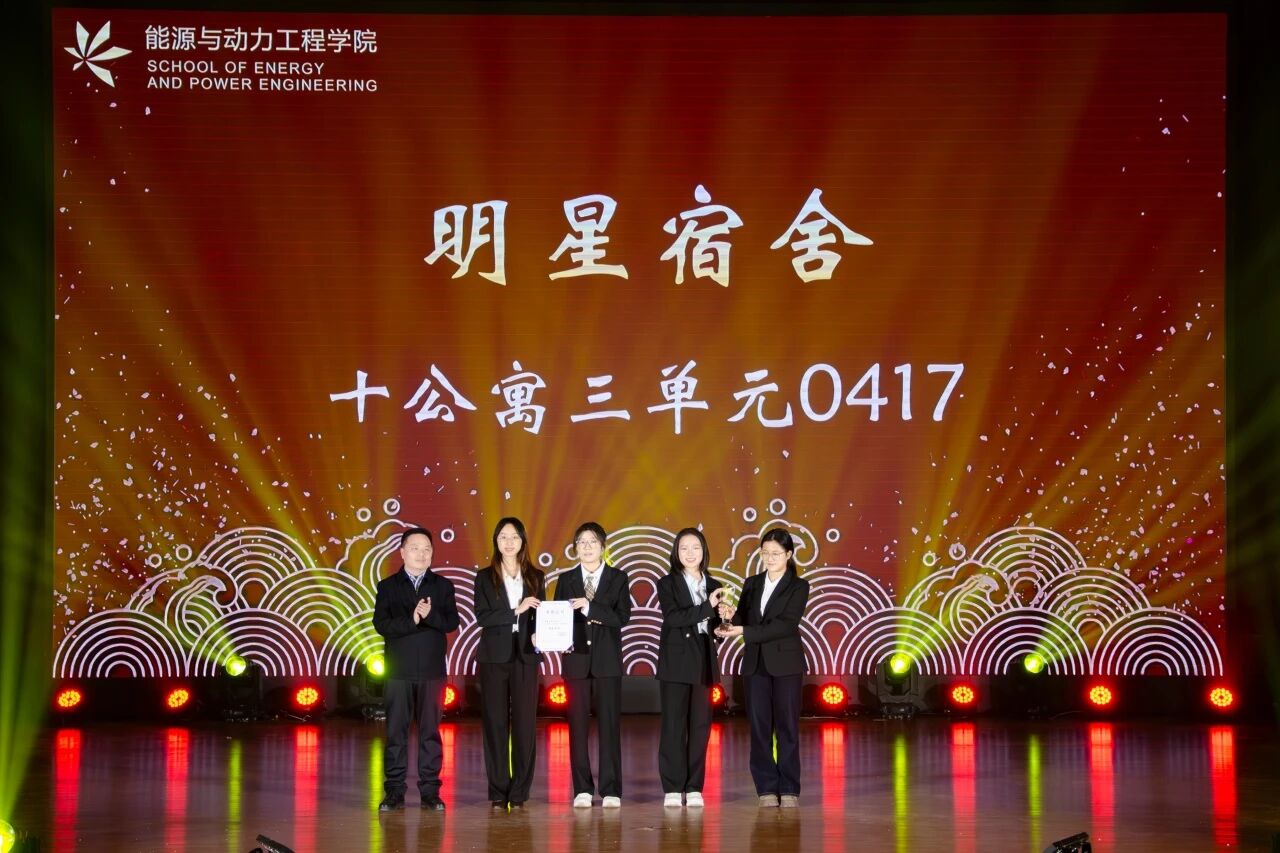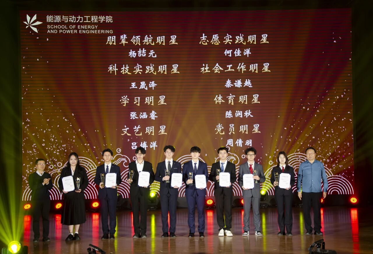 本科生教学副院长孙大坤、研究生教学副院长额日其太共同颁发朋辈领航明星、志愿实践明星等八项奖项;学院党委书记范鹰为明星宿舍及动力学院最高荣誉——“动力之星”获得者颁奖。