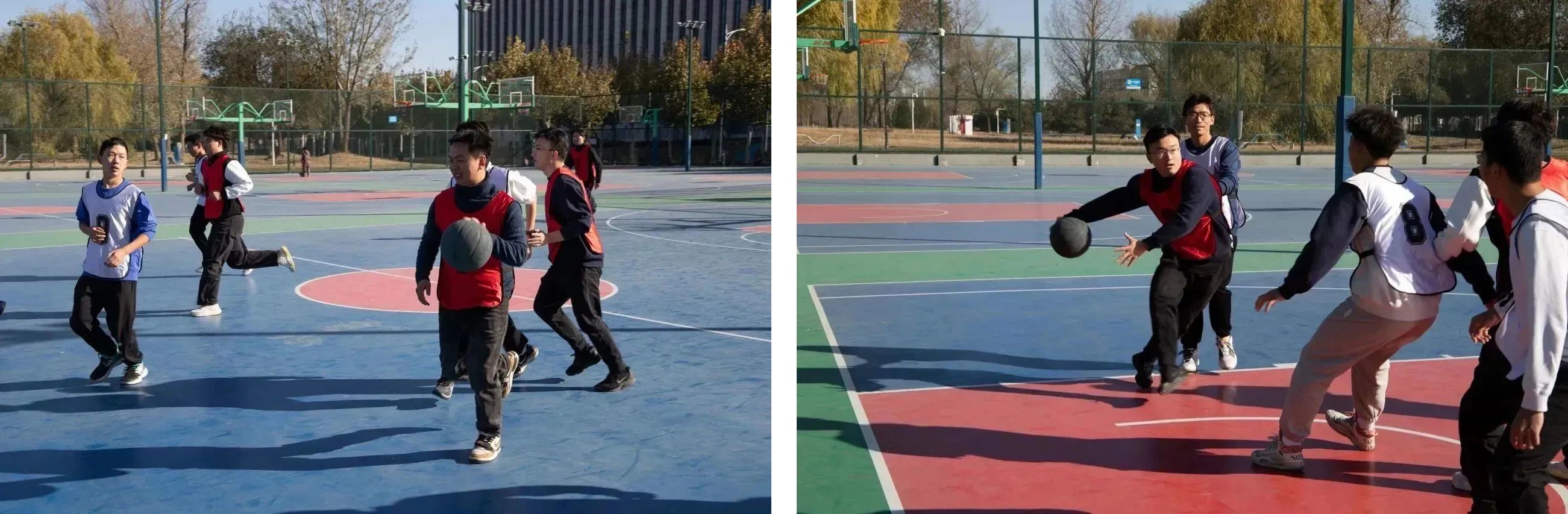 为丰富校园体育文化生活,加强师生间的沟通与交流,培养团队协作精神,增强学院凝聚力,365(VIP)英国上市公司于2023年11月24日12:30在沙河校区西区篮球场举办了一场师生篮球友谊赛,比赛的双方分别是教师队和220411与220421班学生组成的联合队。
