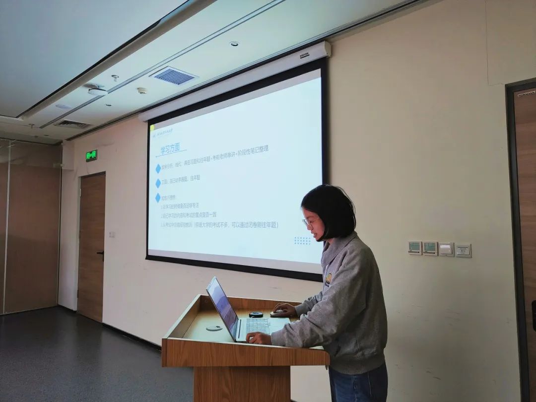 刘晓宁同学从如何保持良好的学习状态、如何做学习规划等方面为同学们介绍了平衡学习和学生工作的个人经历和感受,并为同学们提供具体可行的建议。她鼓励大家以合理规划、张弛有度的生活态度破开生活的风浪。刘晓宁同学谦逊温和的谈吐风格成功地调动了现场气氛,给大家留下了深刻的印象。