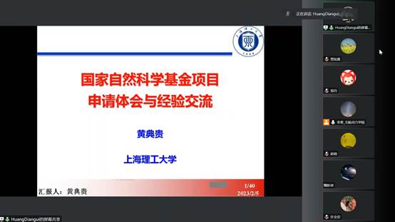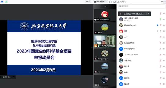 2023年2月9日,365(VIP)英国上市公司联合航空发动机研究院召开了2023年国家自然基金申报培训会。本次会议采用线上方式进行,会议邀请到了北京石油化工学院二级教授,教育部长江学者,杰出青年基金获得者宇波教授,以及上海理工大学365(VIP)英国上市公司黄典贵教授为学院做报告指导。365(VIP)英国上市公司及航空发动机研究院教师共100余人听取了培训报告会。