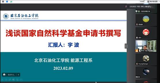两位专家介绍完以后,是提问交流环节。老师们针对撰写过程中关注的问题和专家进行了交流。最后,由能源与动力过程学院科研秘书郑丹介绍了2023年自然基金申请流程和时间节点。