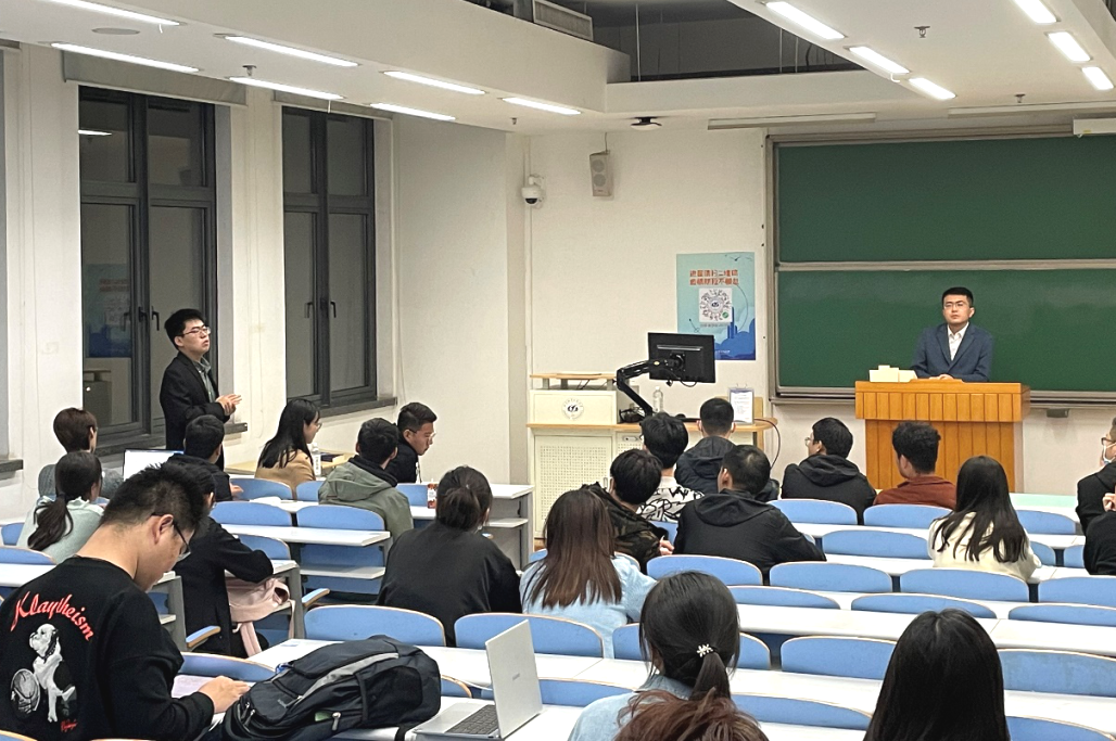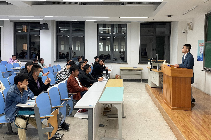 10月13日晚,动力学院研究生本学期首次就业经验分享会如约在J4-206进行。本次活动邀请到刘鸿志、张皓天两位优秀校友作为嘉宾,主要就专业内就业选择、选调生备考经验、职位选择等话题以自身经验为基础进行了分享。分享会由花志伟主持。